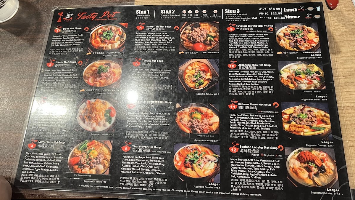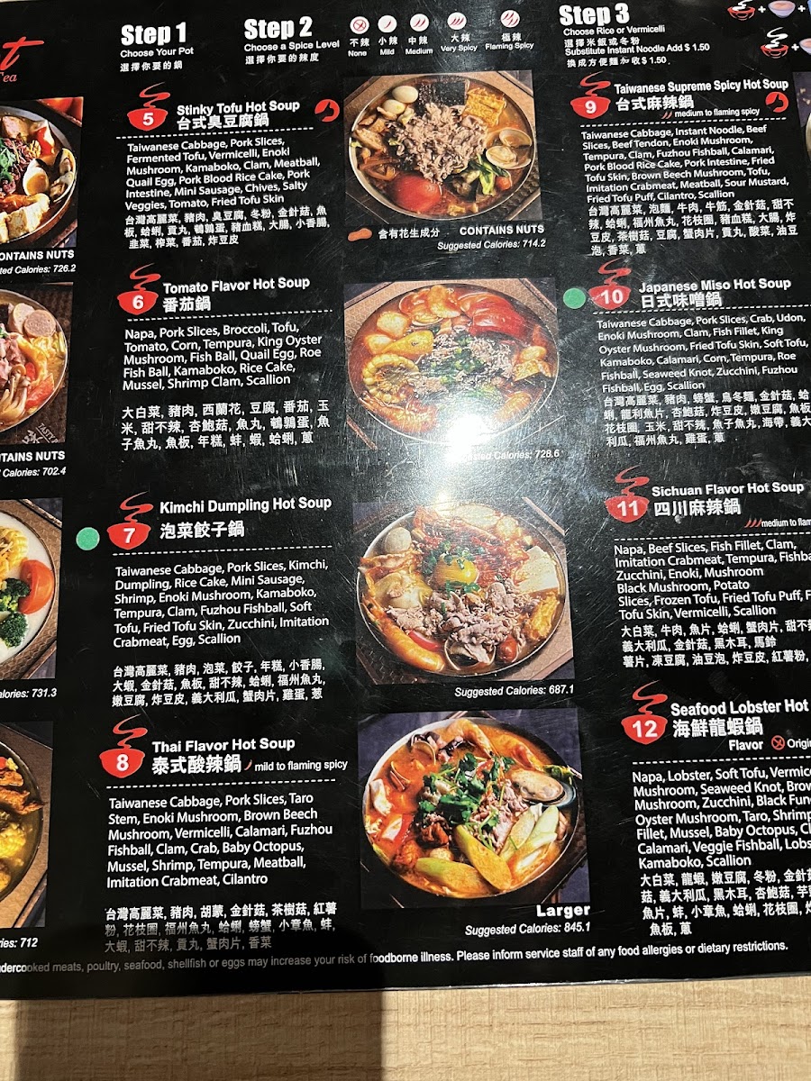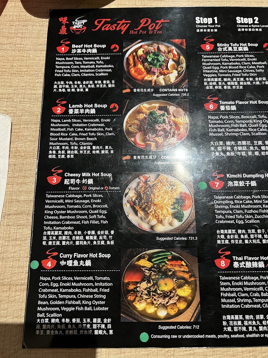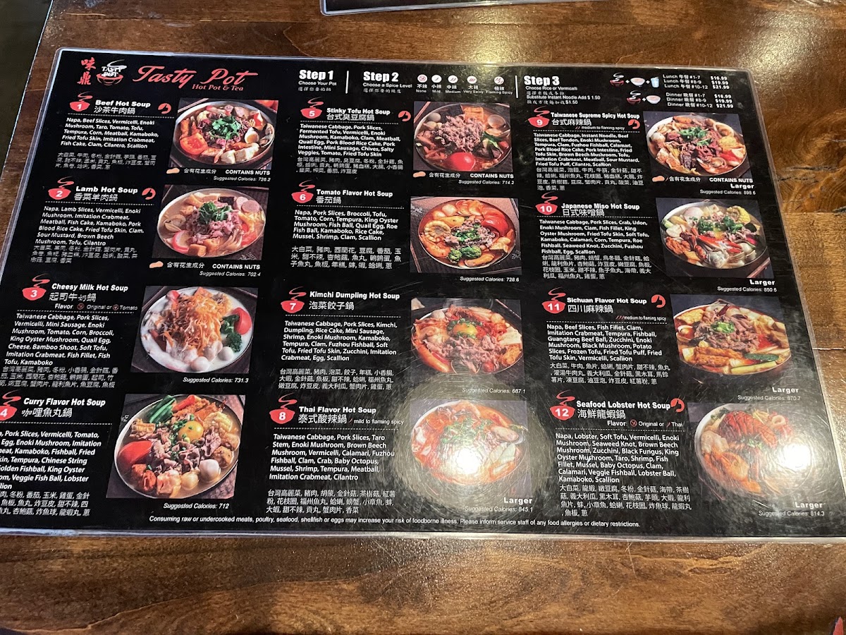 The menu at Tasty Pot 味鼎小火锅 offers a relaxed and comforting dining experience centered around Taiwanese-style hot pots. It’s designed for those who enjoy slow, social meals where fresh ingredients and flavorful broths come together in personal pots to suit different tastes. Whether you're stopping by for a cozy dinner or sharing a casual meal with friends, the variety of hot soups—from the distinctive stinky tofu hot soup to seafood lobster hot soup—invites exploration and warmth.