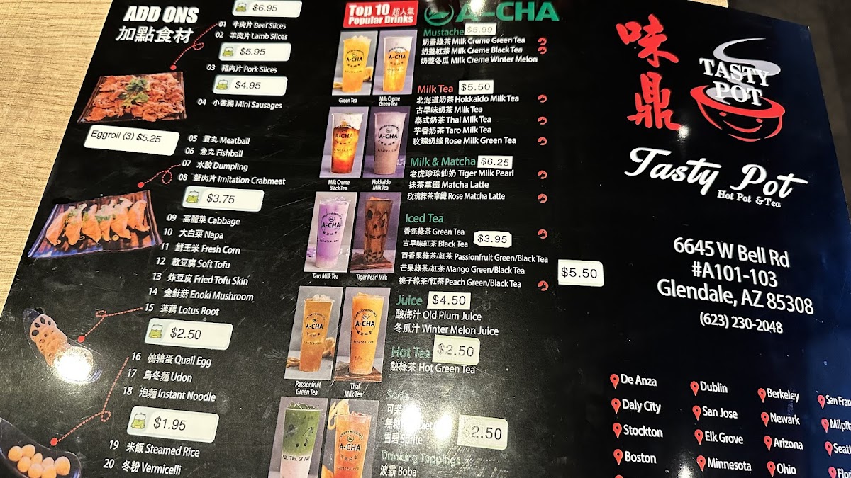 Tasty pot 味鼎小火锅 Menu